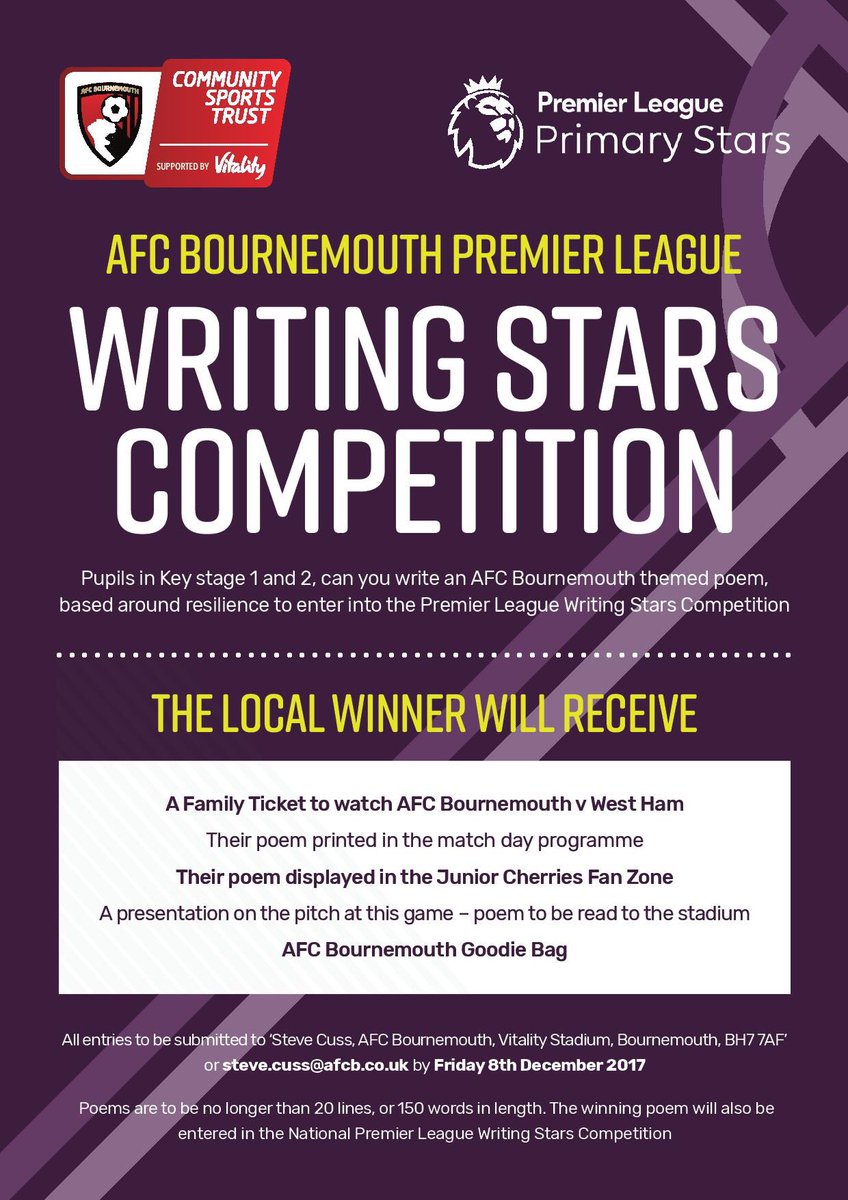 Medhurst Pa Twitter Calling All Key Stage 1 And 2 Pupils Write A Poem On Afcbournemouth And Resilience No Longer Than 20 Lines 150 Words To Win A Family Ticket To The - If you use maximum edit distance=5 for spelling correction then the algorithm would return (too) many spelling correction suggestions, which have nothing in common with the input word.